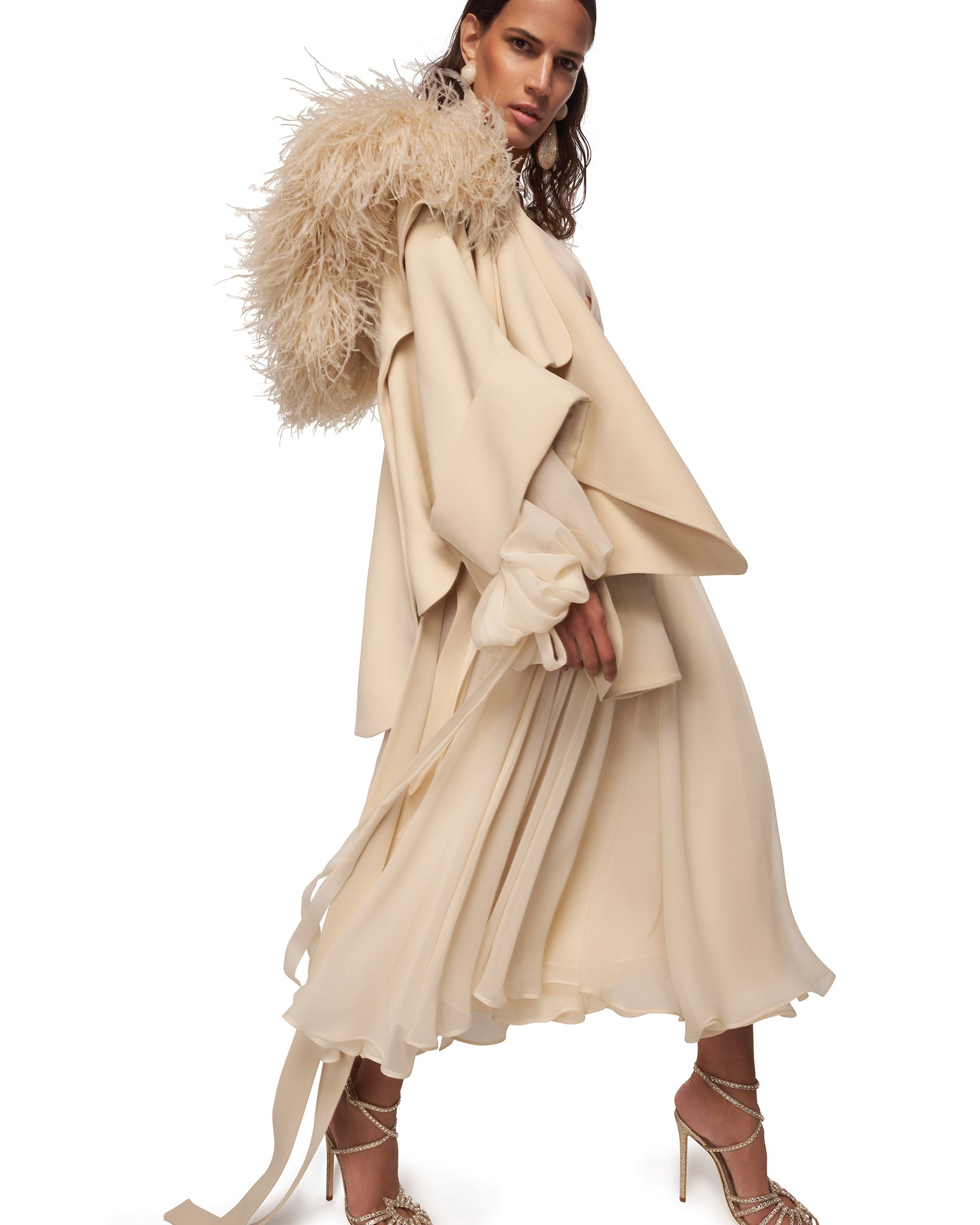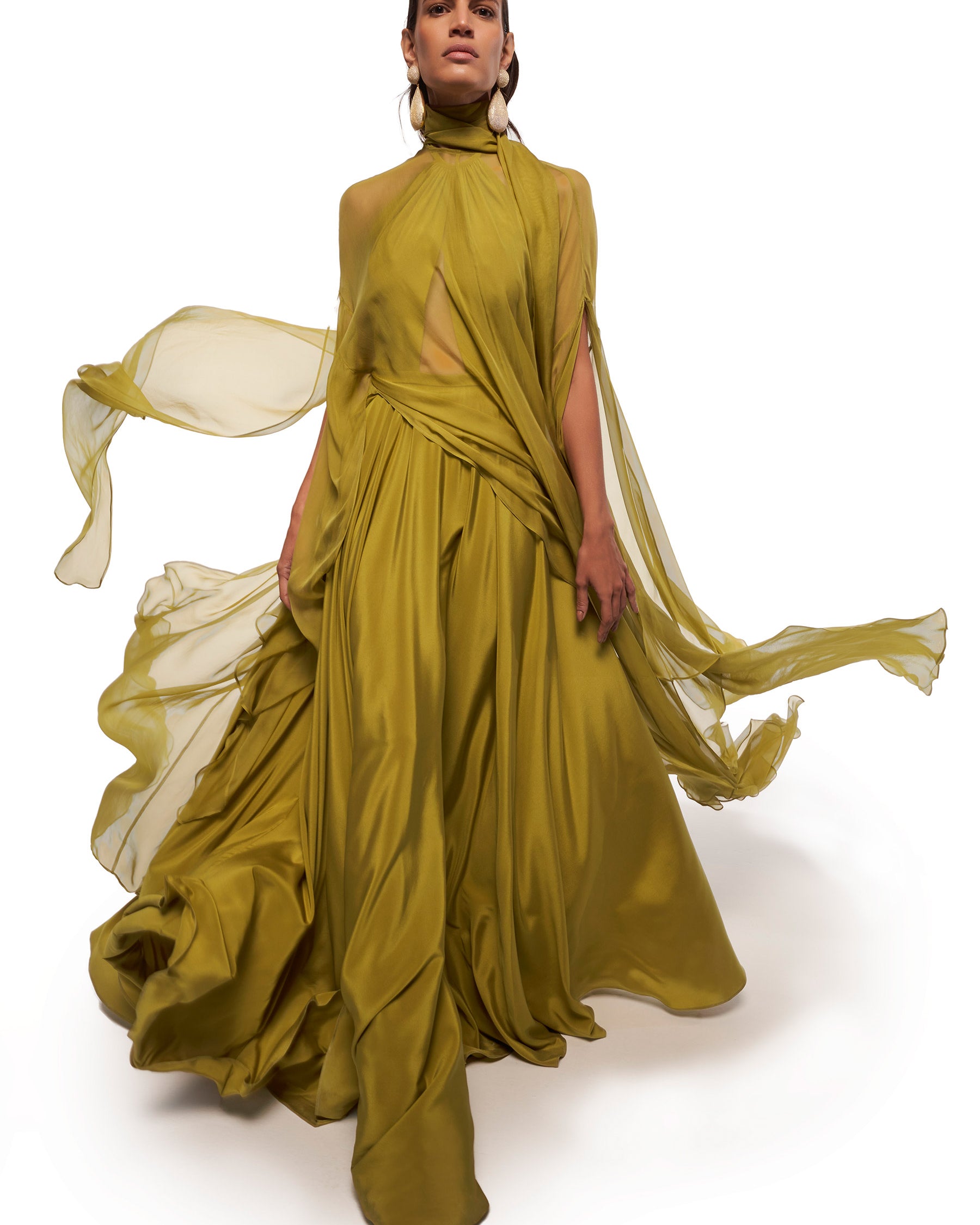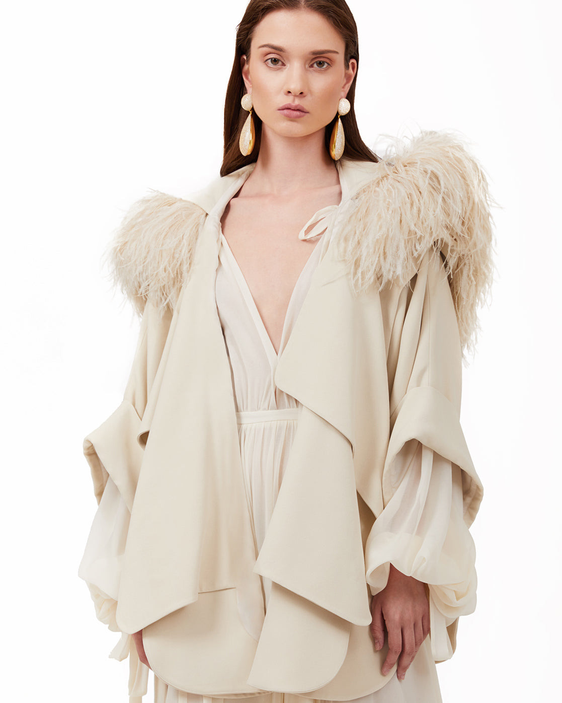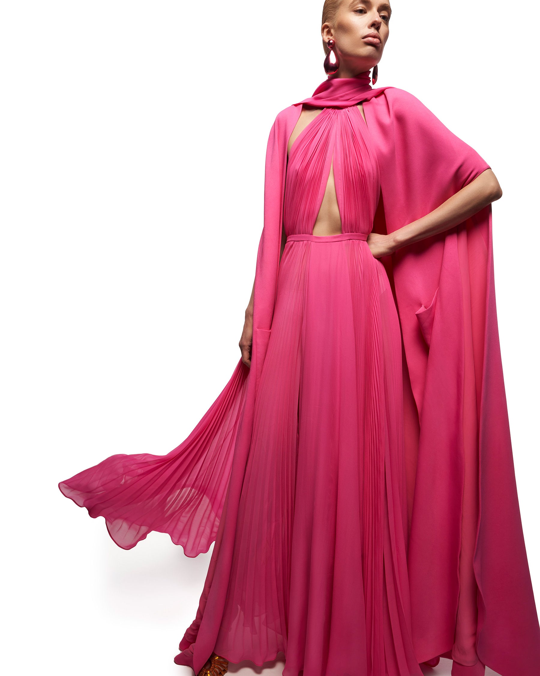 This season marks the debut of the house’s first collection of crystal-encrusted and colored python fantasy shoes, a full commitment to dressing the Harithand muse from head to toe. Each muse dress and accessory is a testament to luxurious fashion-forward thinking, designed to captivate and inspire.
