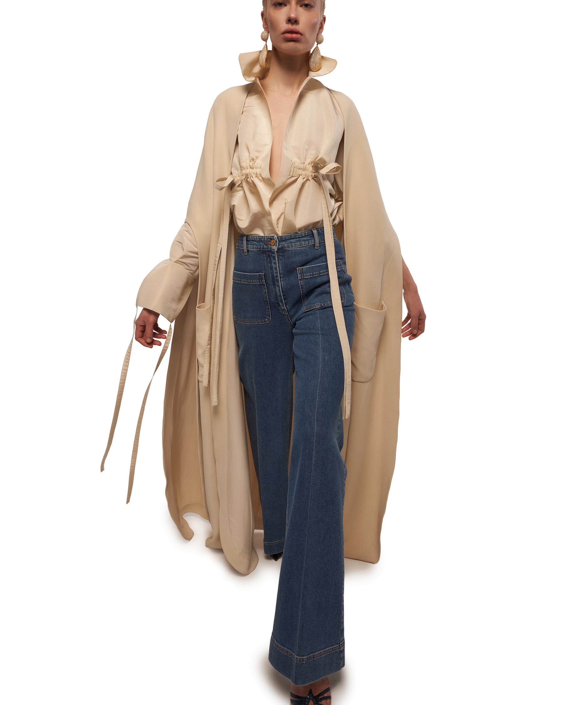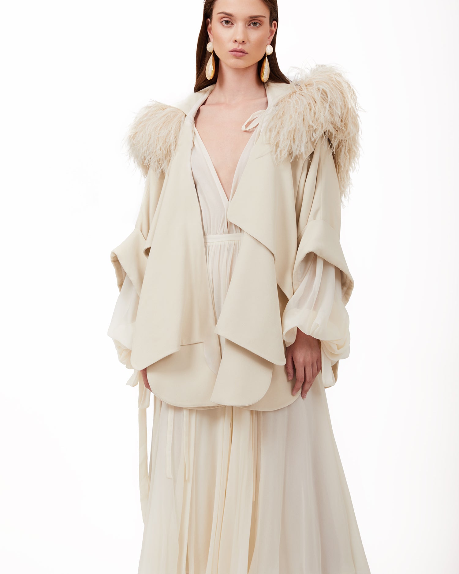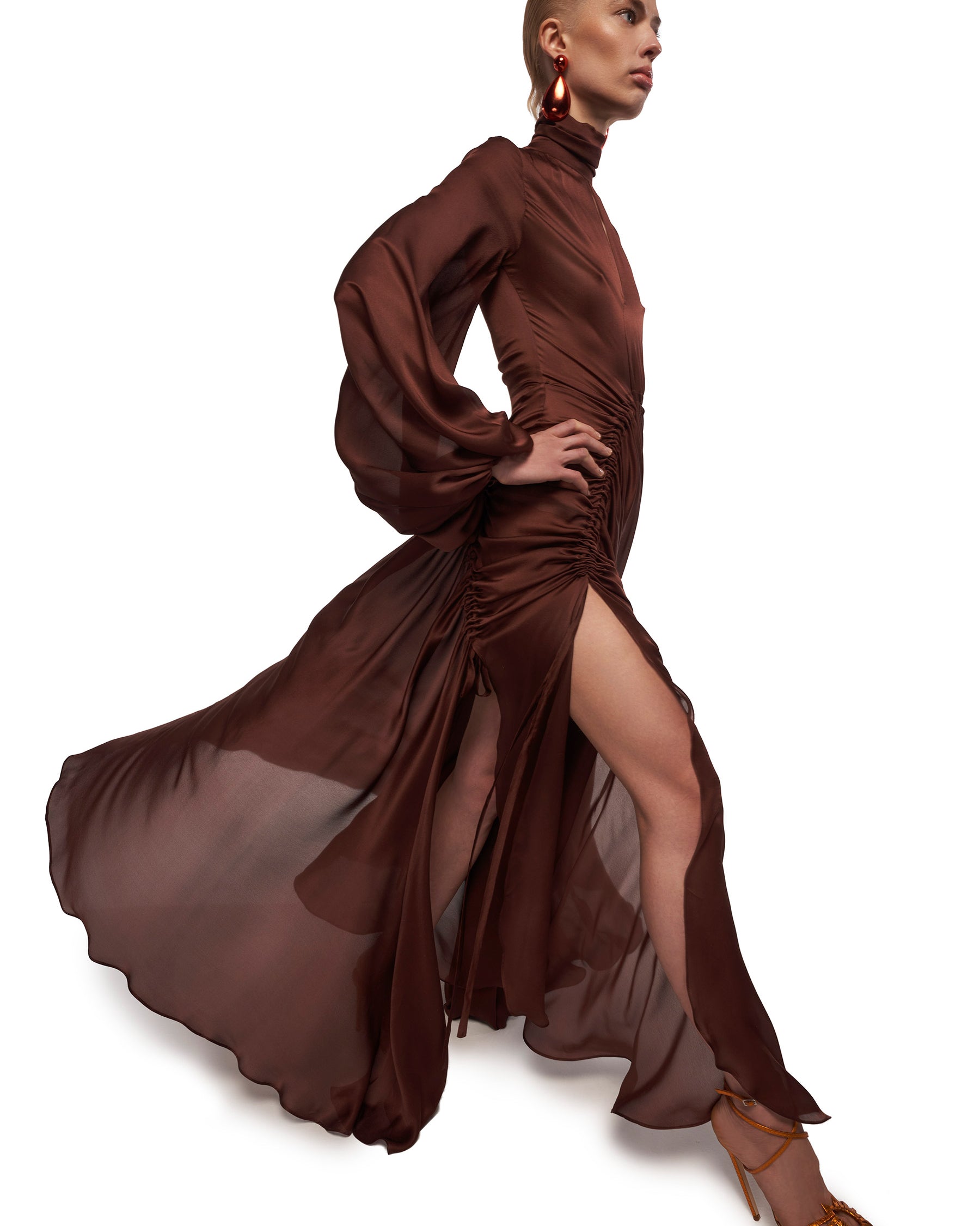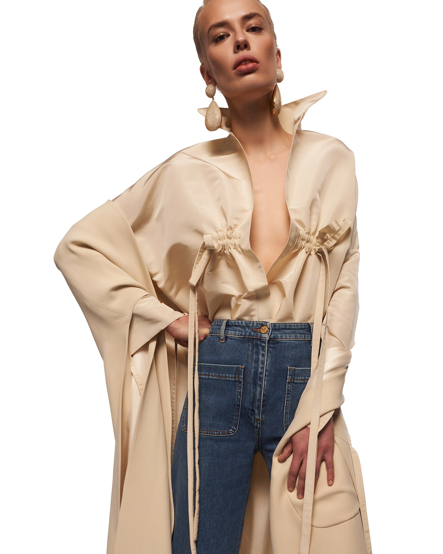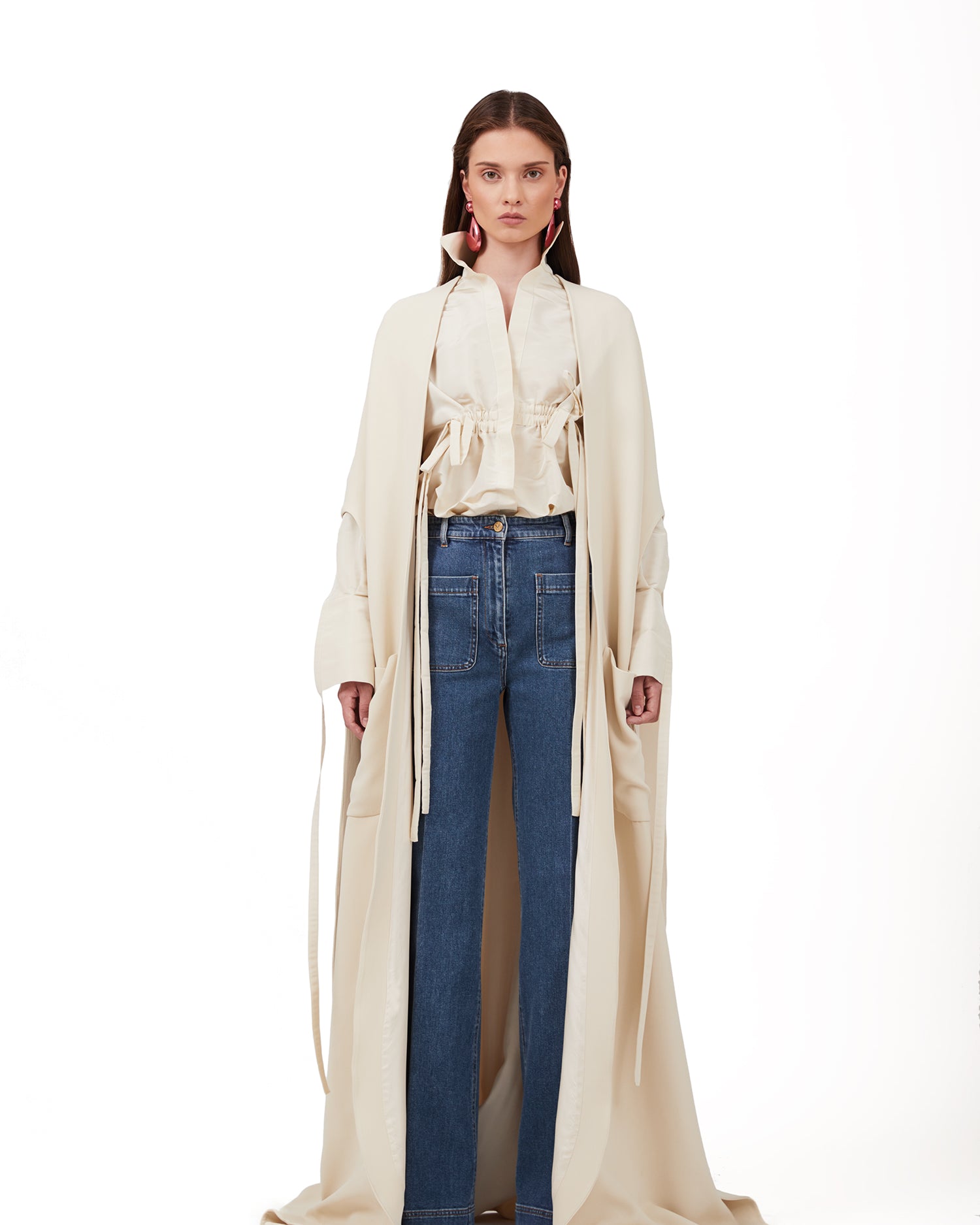 At the heart of "Boy Tear" lies a range of haute couture dresses that feature intoxicating fluidity and bold, floaty tiers of silk. Each piece, whether part of our evening or everyday wear, is designed to infuse your wardrobe with intrigue through undone ties and enticing flashes of skin, making every outfit an expression of unique artistic vision.