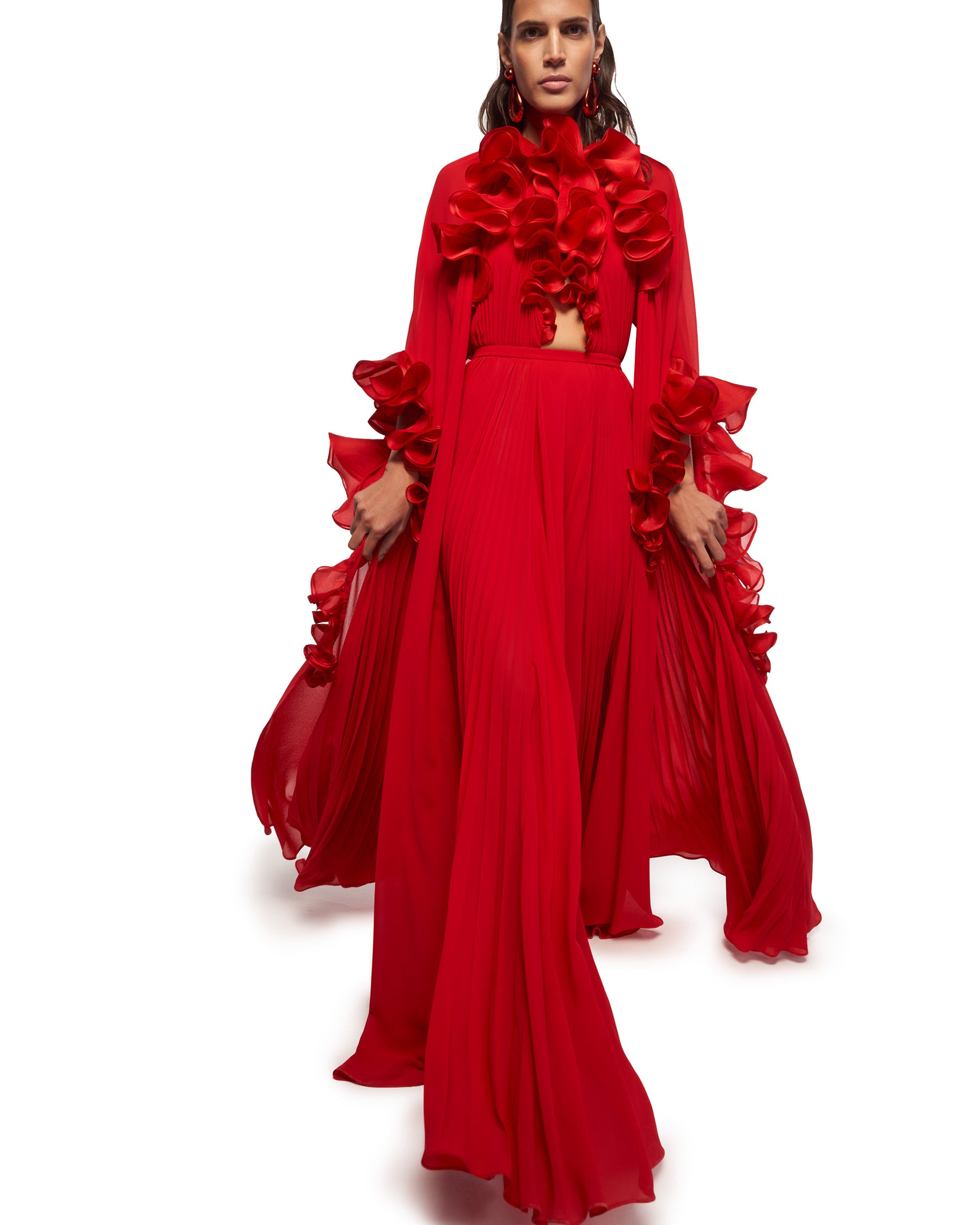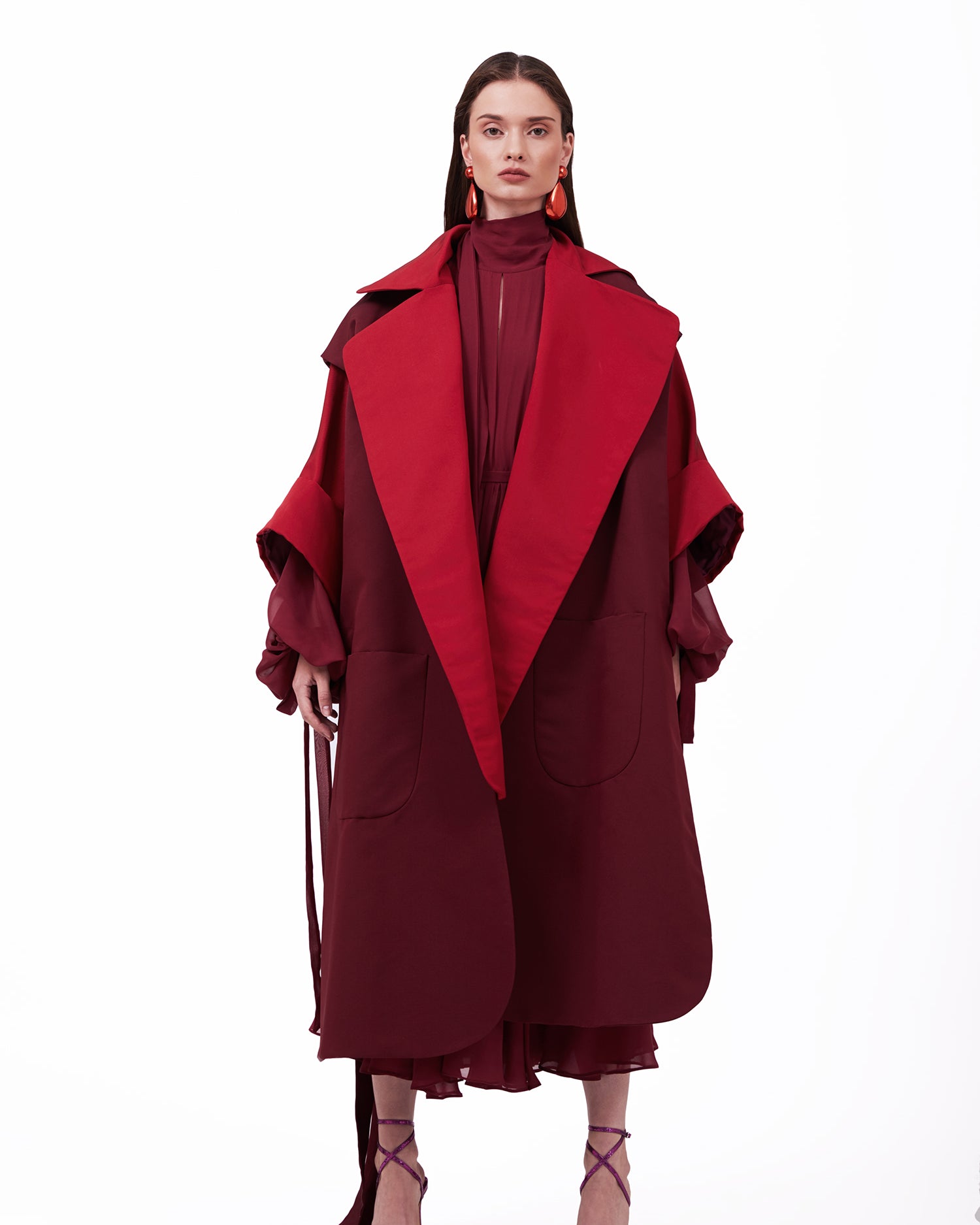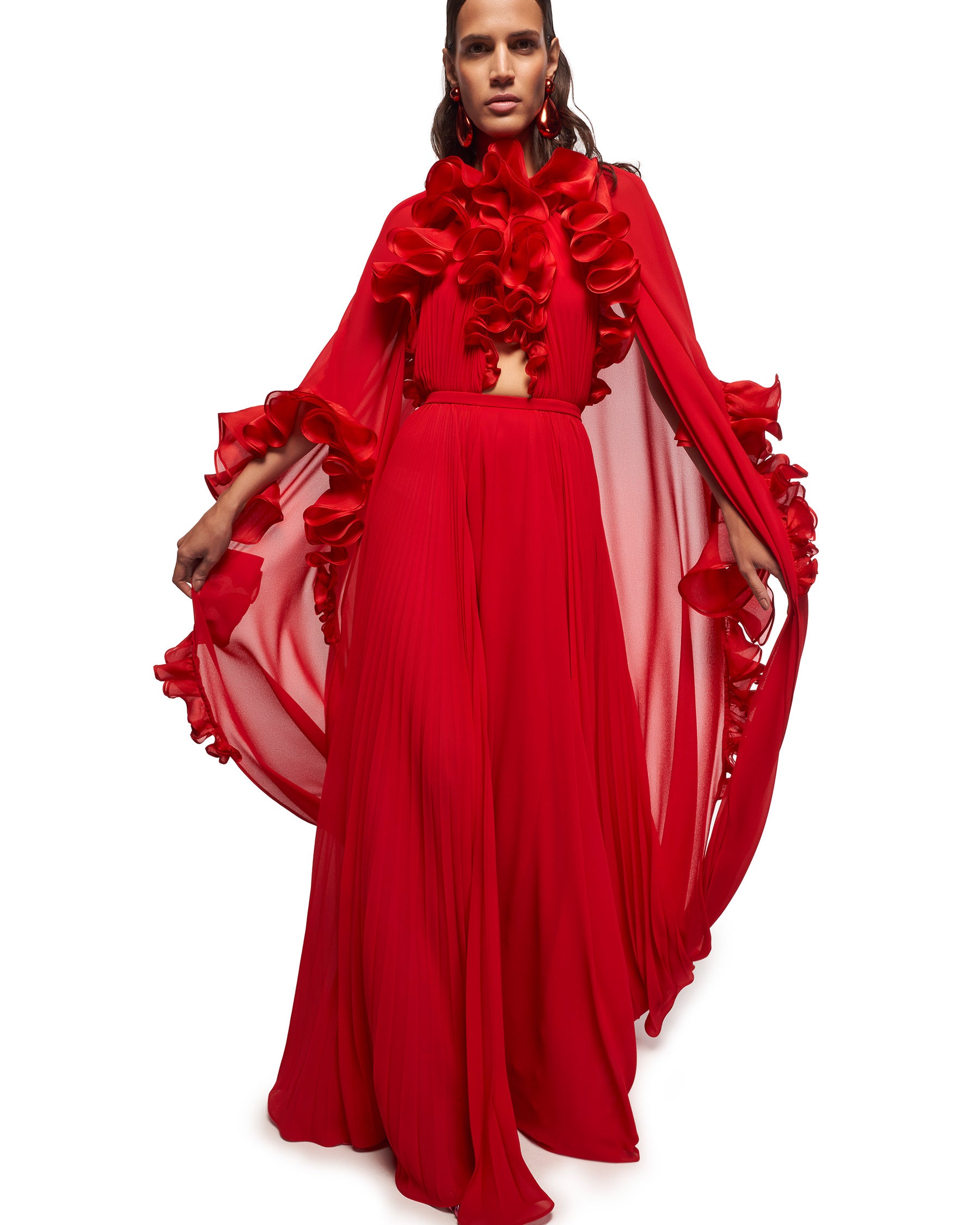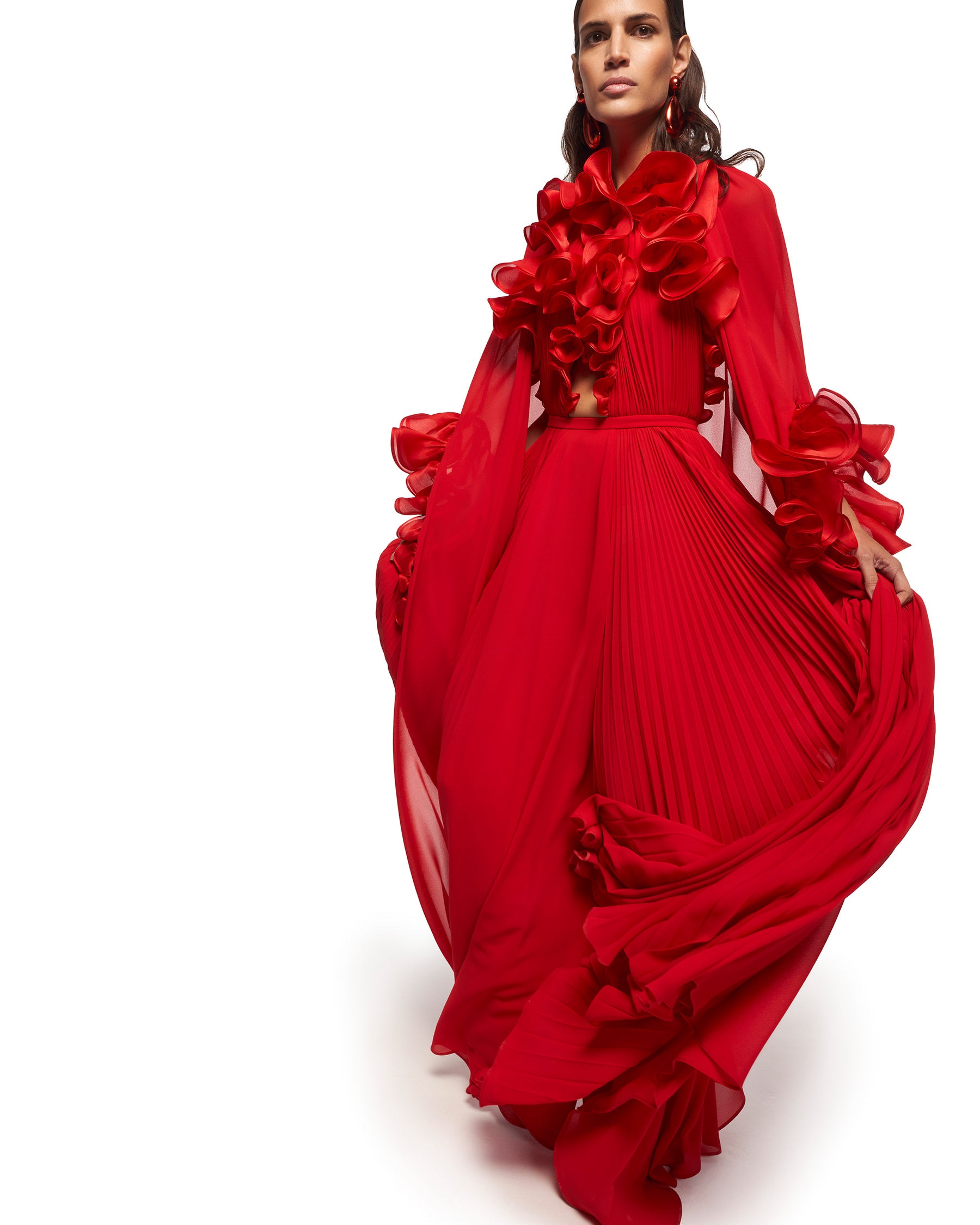 Among the standout pieces is designer Harith Hashim’s favorite, the decadent red evening gown. This undulating showstopper dares all who encounter it to bask in the radiant energy and audacious style of the house, making it a perfect emblem of the collection’s spirit.