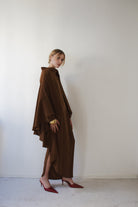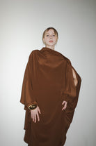 • Asymmetric sleeves (one with split), batwing, maxi hem