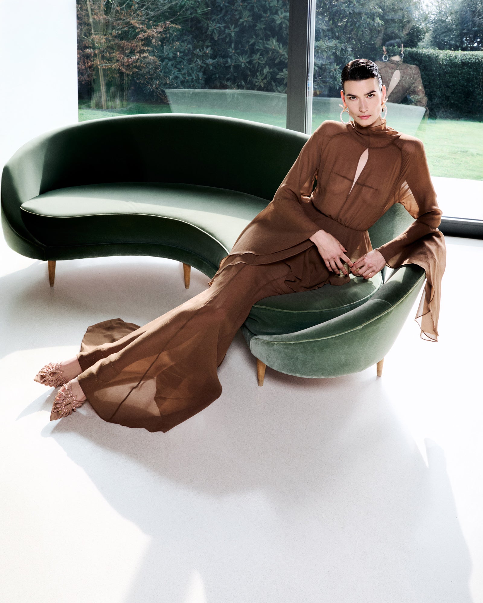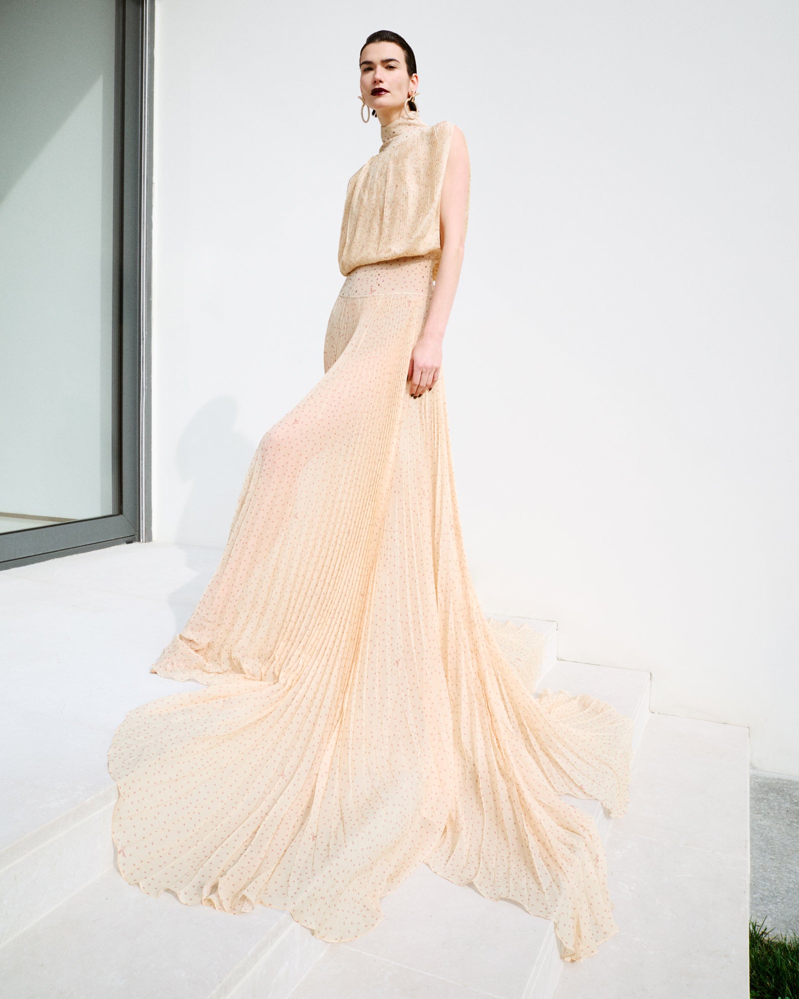 The collection redefines elegance through sculpted tailoring, fluid silhouettes, and rich textures.