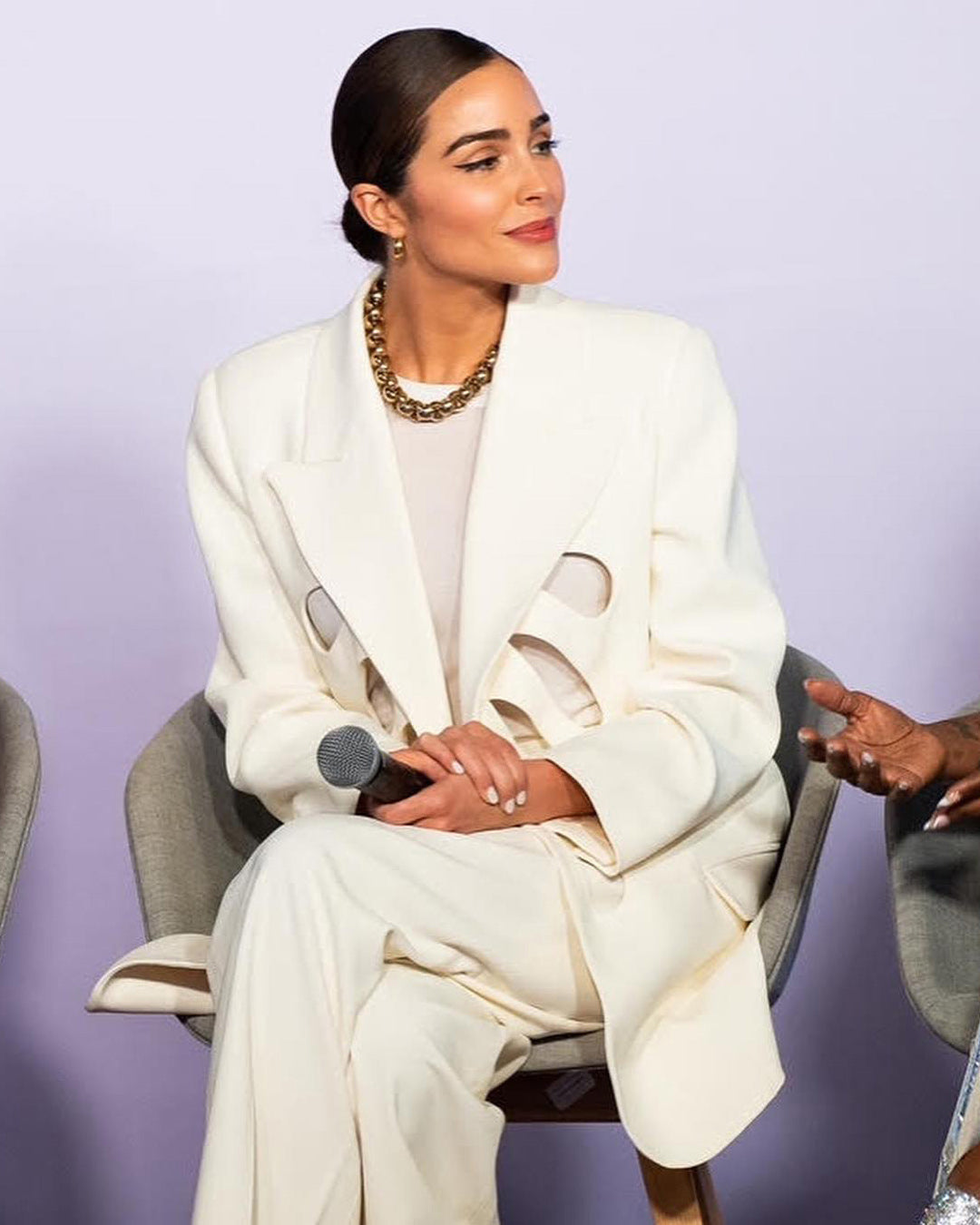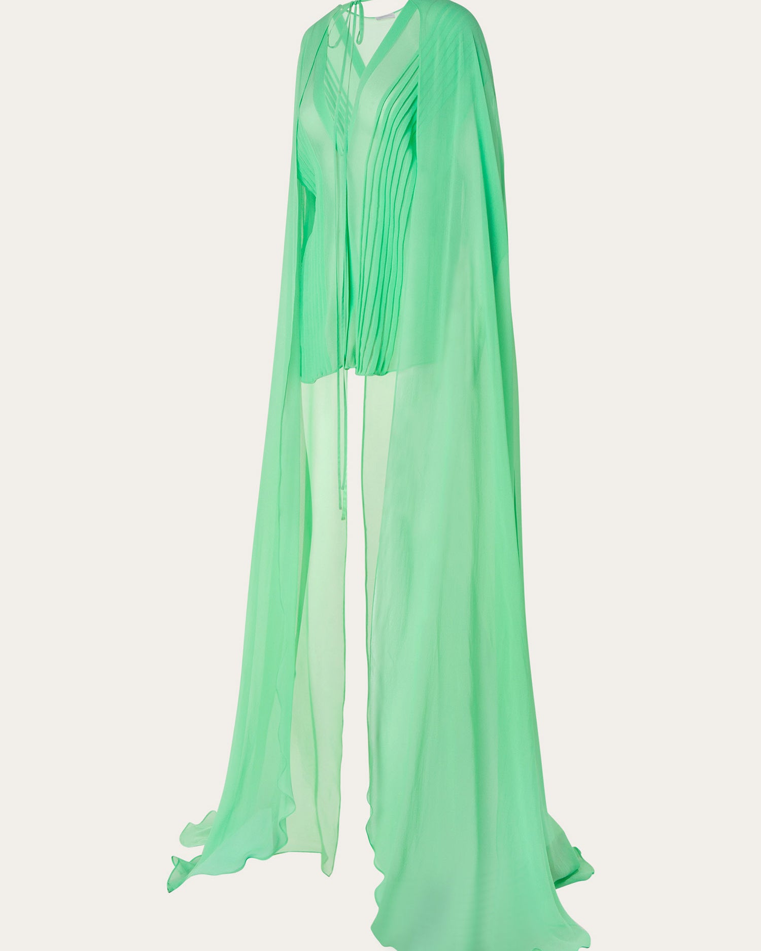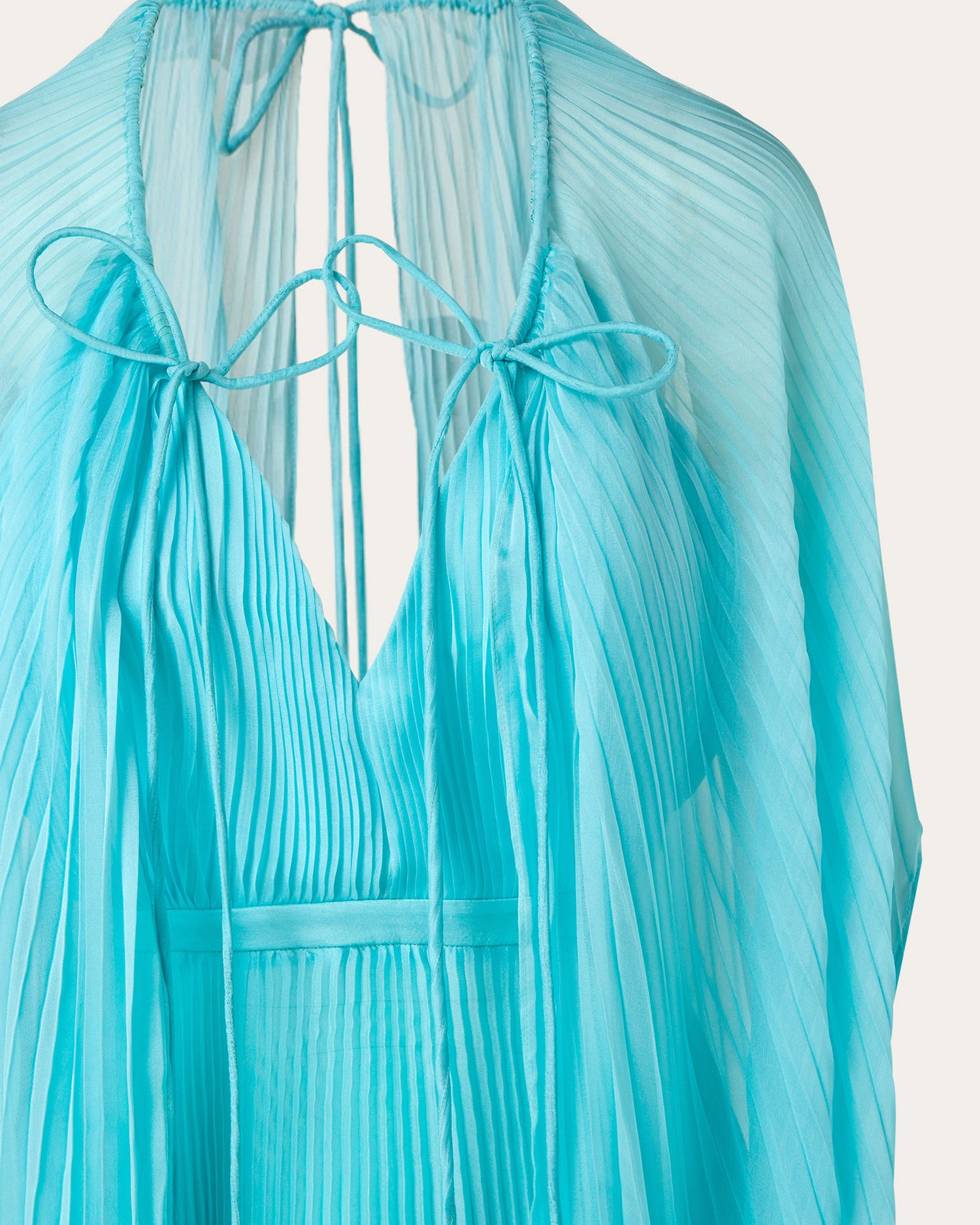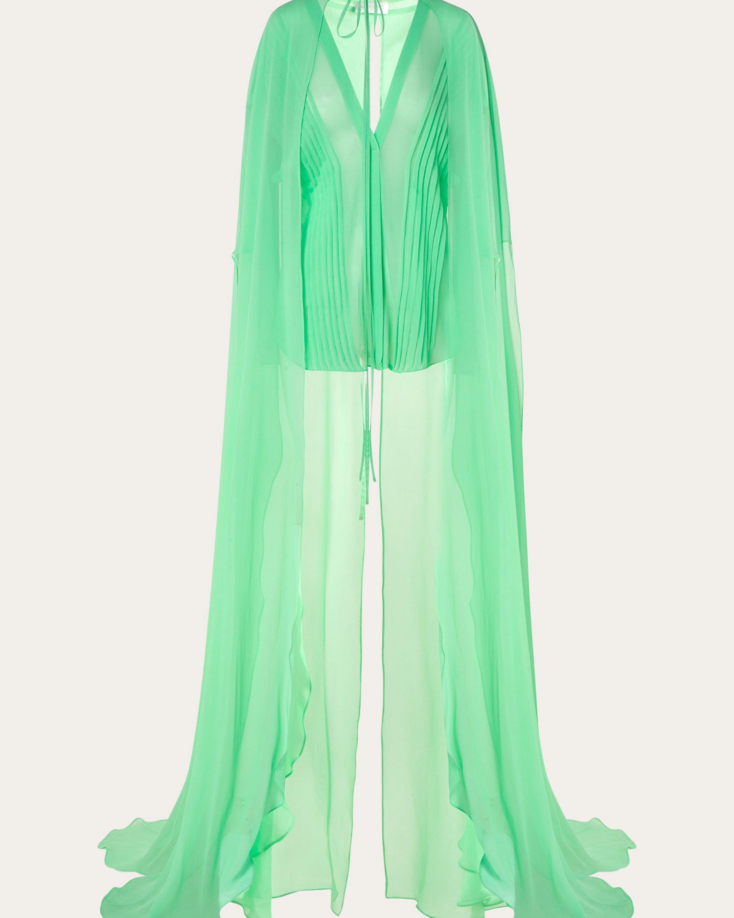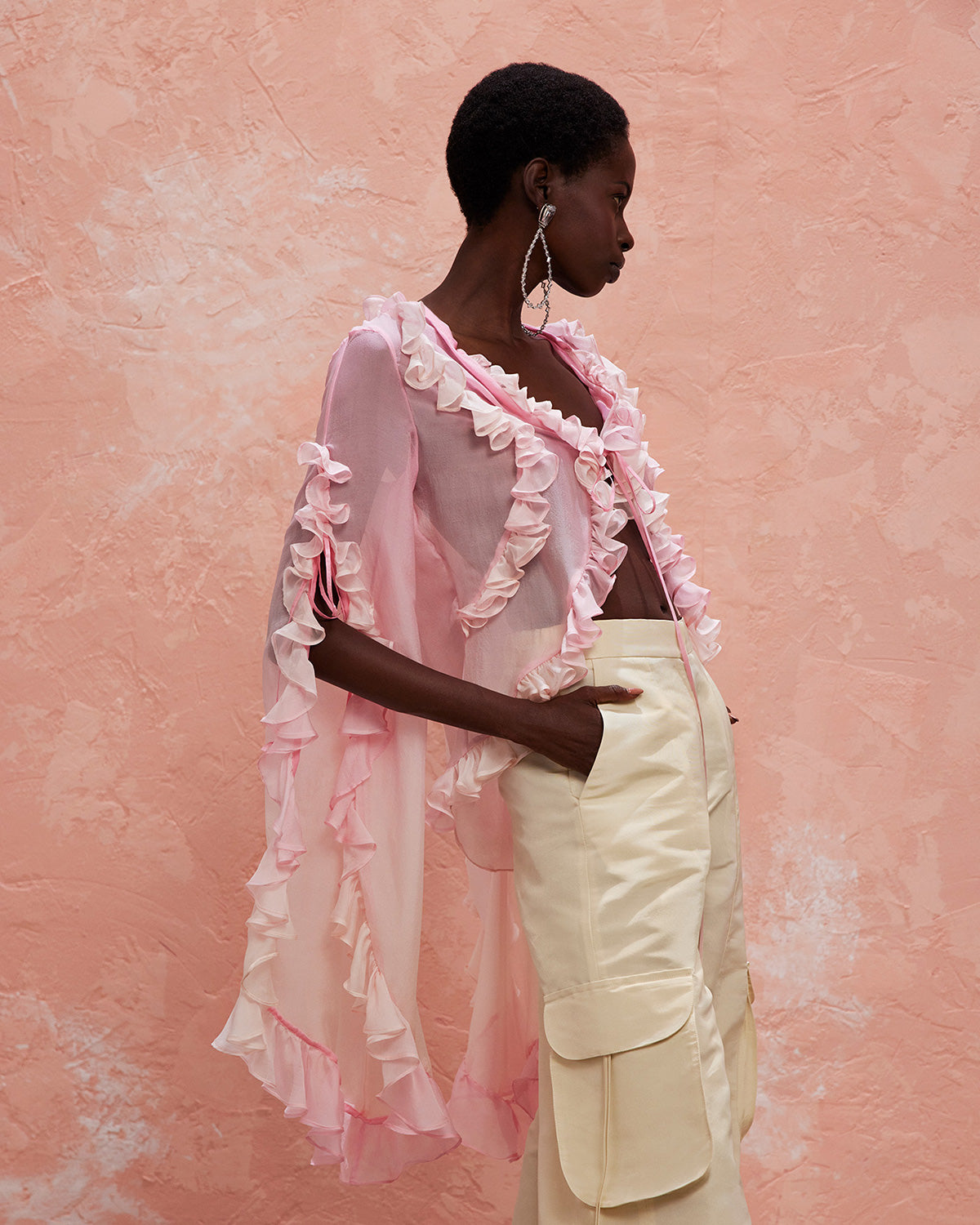 The collection also features a modern take on disco dresses, where kaftans and suiting are reimagined through the house’s signature tear designs that introduce new shapes of fluidity. These elements subtly reveal and kiss the skin, paying homage to the collection’s muse with mesmerizing grace.
